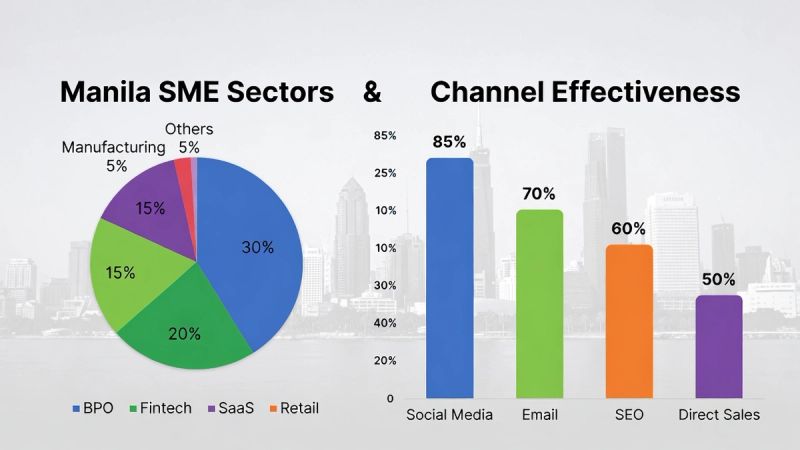 Description: Shows sector distribution and which channels deliver the highest engagement in Manila.
