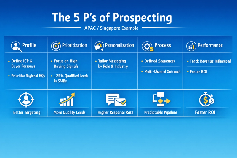 Discover APAC B2B prospecting, outsourced sales development for SMBs in Singapore, and how the 5 P’s help hybrid sales teams book more meetings using AI-powered sales prospecting tools.