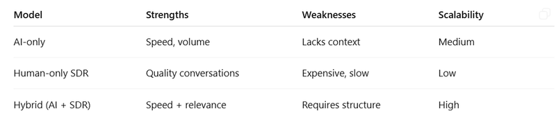 A SaaS startup in Singapore implemented a hybrid SDR + AI prospecting model: