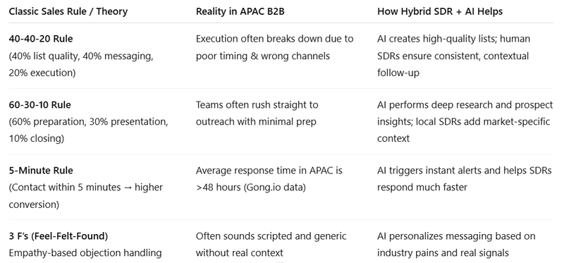 Discover why common sales rules fail in APAC B2B, and how outsourced SDR teams + AI-powered sales prospecting tools help build predictable pipelines and book more meetings.