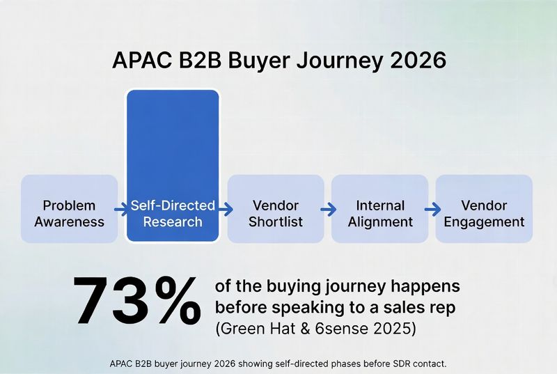 APAC B2B buyer journey 2026 showing self-directed phases before SDR contact