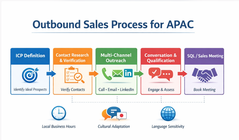 Figure 1: Outbound sales process diagram for APAC B2B lead generation.