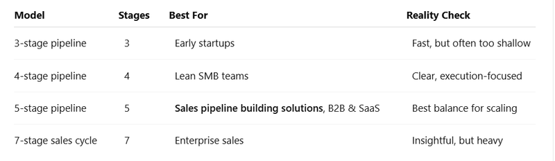 This is the most searched question, and for good reason. The 5-stage pipeline works for most B2B teams because it adds structure without slowing things down.