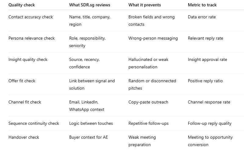 Table 3: SDR.sg quality control framework for AI-assisted outbound