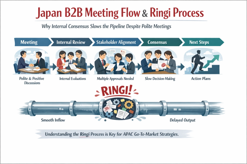 Insight: Even if B2B prospecting APAC markets looks okay on paper, the drop happens after meetings due to nemawashi (pre-lobbying stakeholders) and ringi (circular approvals), which define internal Japanese processes.