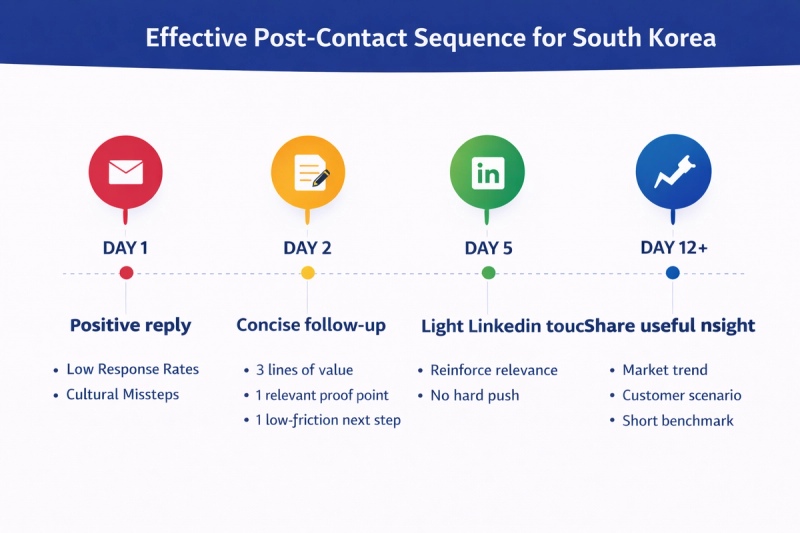 Learn why B2B lead generation in South Korea often stalls after the first reply, and how to improve post-contact momentum, buyer trust, and meeting conversion.